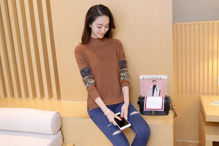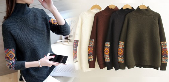Женский пуловер с декором на рукавах. Материал: Полиэстер, Хлопок.