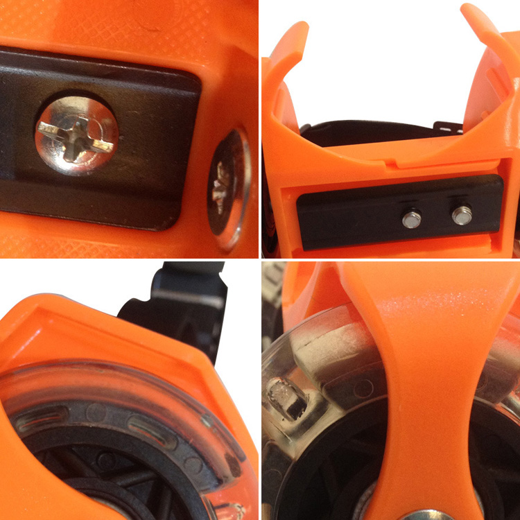 Роликовые колеса одеваются прямо на обувь и позволяют перемещаться по городу быстро и с комфортом! Колеса раздвигаются под размер обуви, а также светятся во время езды.