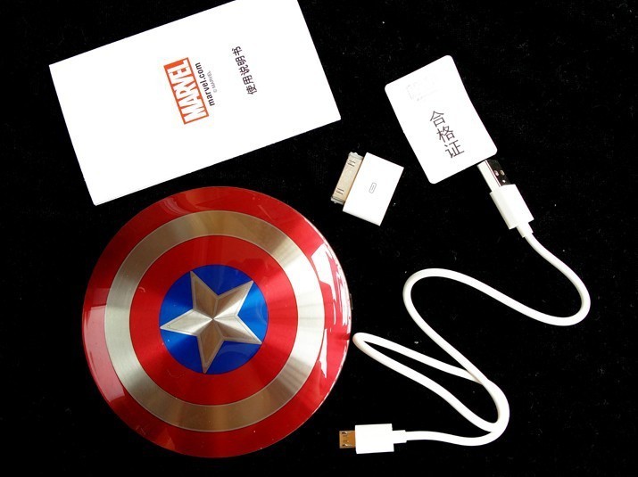 Новинка для любителей комиксов и компьютерных игр: в серии внешних аккумуляторов в стиле The Avengers (Мстители) пополнение - портативный аккумулятор в виде щита всемирно известного героя теперь на 6800mah.