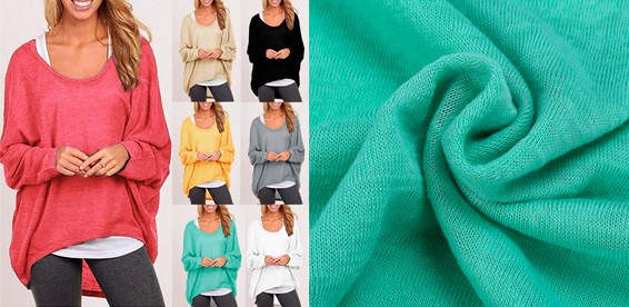 Женский пуловер, с длинными рукавами (рукава в форме крыльев летучей мыши), круглый вырез, удлиненная спинка, в ассортименте разные цвета.