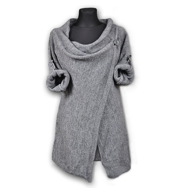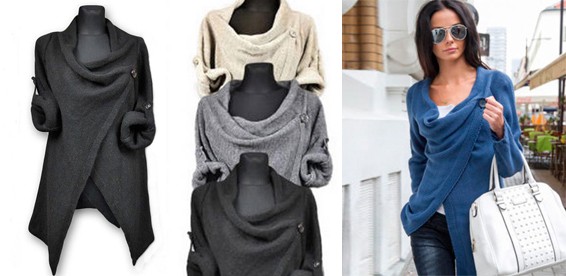 Удобный и стильный кардиган-пончо с длинными рукавами. Особенно выигрышно он будет смотреться с очень узкими джинсами. В ассортименте разные цвета (чёрный, серый, синий и бежевый). Застегивается кардиган на пуговицу.