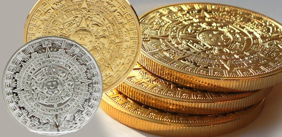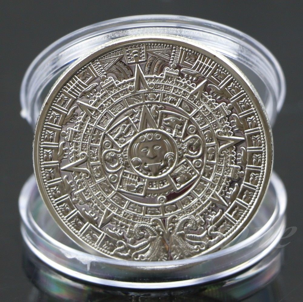 Монеты имеют два типа покрытия: золото и серебро. Календарь Ацтеков КАМЕНЬ СОЛНЦА — великий алтарь во славу жизни с астрологическими символами и направлениями пространства. Дарует способности к предвидению, способность эффективно распоряжаться своим временем и извлекать максимум прибыли за короткий срок. В древние времена позволял посвященным наместникам бога считывать время оборота планет, наступления затмений и других астрологических явлений, что помогало верно управлять подданными. Камень Солнца — монолитный базальтовый диск с символическим изображением ацтекской космогонии и солнечного культа. Монумент имеет 3,60 м в диаметре и 1,22 м в толщину и весит 24 тонны, в настоящее время находится в экспозиции Национального музея антропологии.