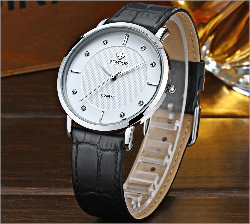 Эти стильные водонепроницаемые ультратонкие мужские часы-хронограф на кожаном ремешке превосходно сидят на мужской руке, подчеркивая силу и уверенность своего владельца.