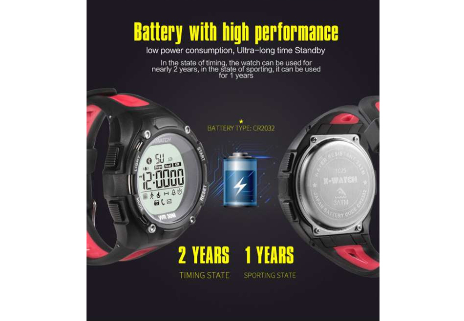 1. Большое время использования, низкая мощность потребления энергии, очень большое время работы в режиме ожидания, в состоянии использования только просмотра времени, часы могут быть использованы в течение почти 2 лет, в режиме спортивной активности, он может быть использован в течение 1 года.