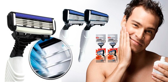 Чистое бритье одним движением! Высококачественная Бритва с 4 лезвиями точно следует контурам лица, удобно лежит в руке и обеспечивает чистое бритье при помощи четырёх лезвий. Смазывающая полоска с витаминами обеспечивает легкое скольжение и комфортное бритье.