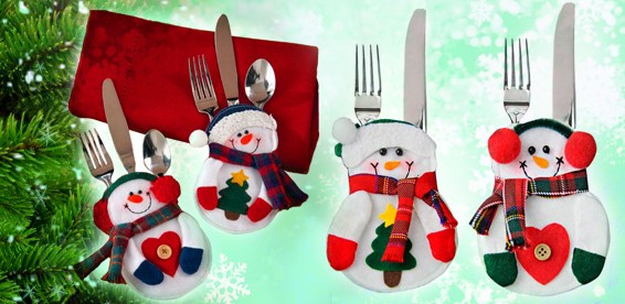 Снеговики для столовых приборов. Необычное и очаровательное решение для сервировки стола.