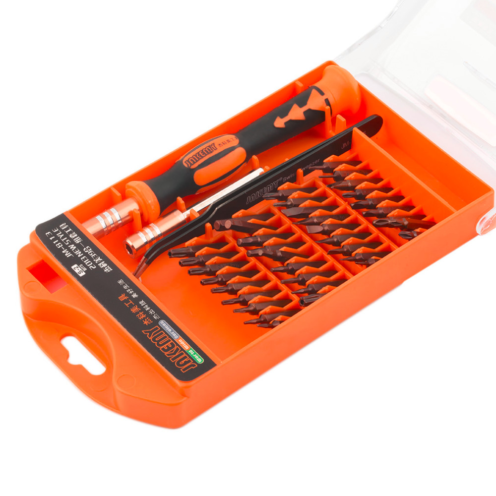 Набор отлично подойдет для ремонта техники фирмы Apple, а так же смартфонов и планшетов. Удобная ручка со встроенным магнитом надежно фиксирует биты от выпадения, вращающийся упор на ручке удобен при работе с маленькими винтами. Отличается высоконадежной CR-V сталью с темным никелевым напылением для ежедневной работы.