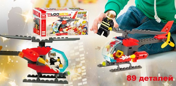 - Соединив их в правильном порядке, ребёнок получает модель вертолёта пожарной службы с кабиной пилота и фигуркой пожарника, что позволяет придумать много новых сюжетов для игр.