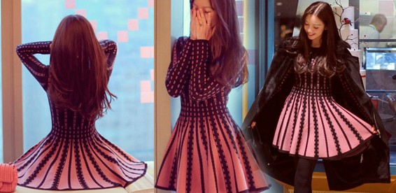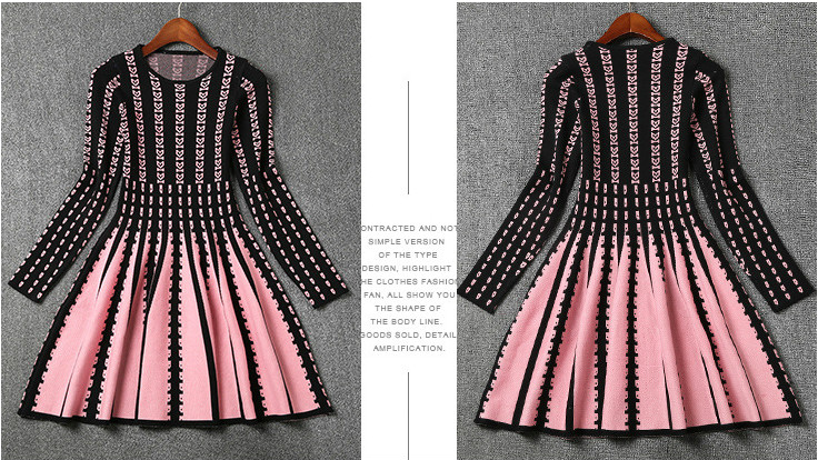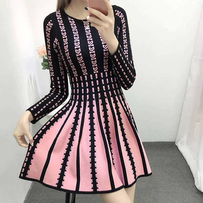 Тёплое платье с длинным рукавом, приталенное, юбка клёш.