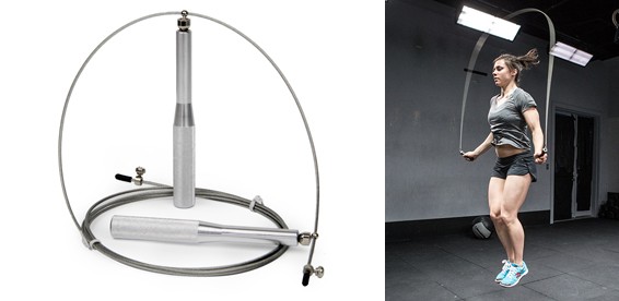 За счет использования подшипников, которые вращаются на 360°, и металлического троса достигаются большие скорости вращения,что увеличивает интенсивность выполнения. Скакалка для кроссфита.