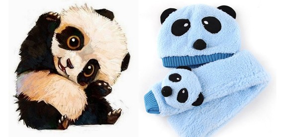 Симпатичный тёплый зимний комплект (шапка + шарф) для малышей "Панда"