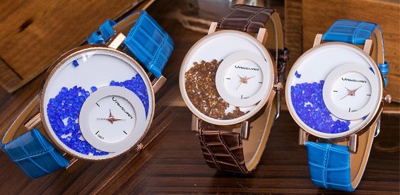 Таких часов Вы не увидите ни у кого! Циферблат с «танцующими кристаллами», кошеный ремешок с интересной фактурой. Все элементы внимательно выбраны и замечательно дополняют друг друга.