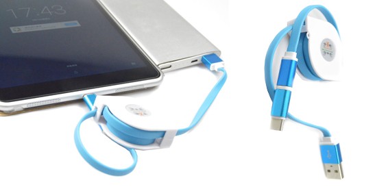 USB-кабель выполнен в виде рулетки, что позволяет комфортно использовать его в любых ситуациях и предотвращает запутывание или случайное повреждение.