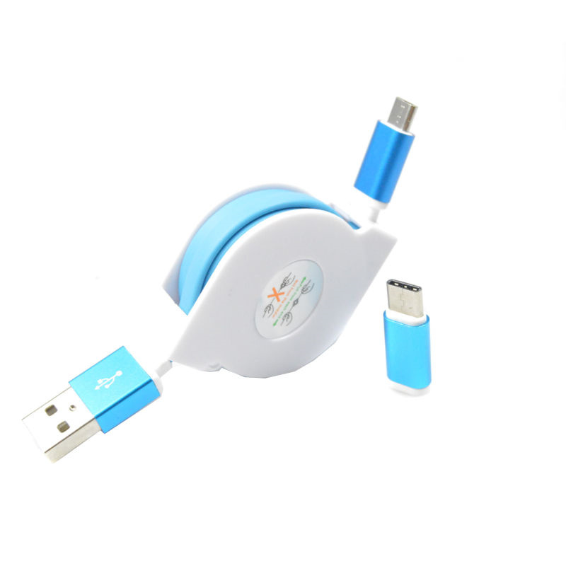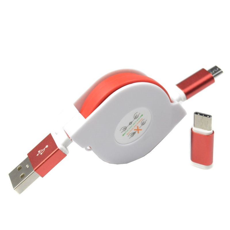 Кабель-зарядка "Рулетка". Длина 1 метр 1.8A кабель Micro USB + адаптер Micro USB Type-c