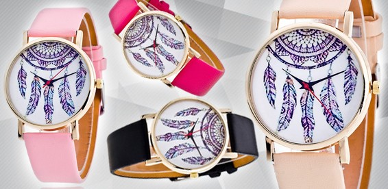 Часы разных расцветок. Часовой механизм кварцевый. На циферблате изображен «Ловец снов». Кожаный ремешок.
