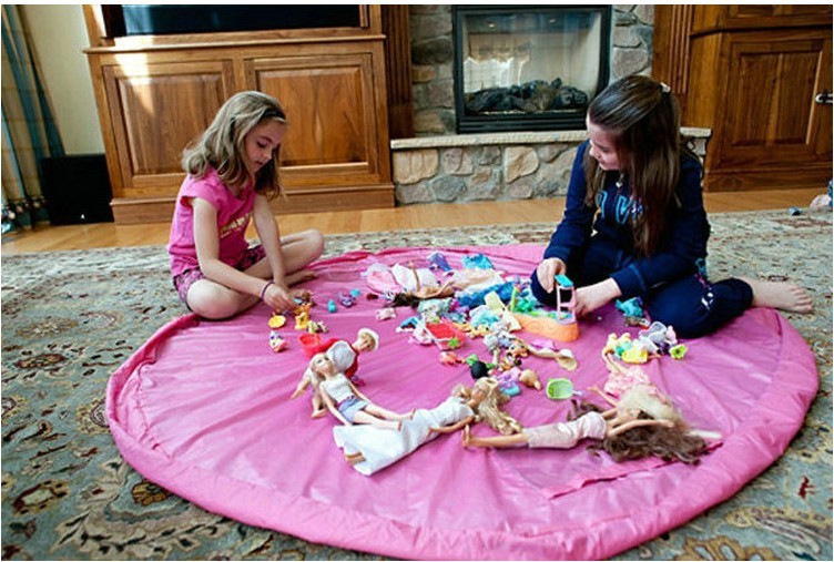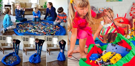 Пусть детишки играют на коврике, а когда придет время убирать, просто стяните края мешка уберите его в шкаф.