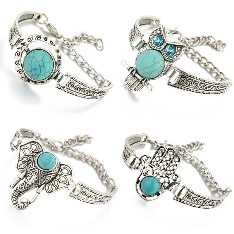 Браслеты с вставкой под бирюзу. Разные символики на выбор. Подходит на тонкое запястье, но так же имеется запас в виде цепочки для регулирования длины. Длина браслета 17 см. Отличное качество.