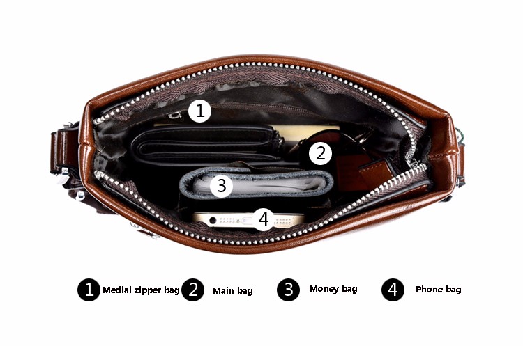 *Карман на молнии; карман для мобильного; отделение для документов; отделения на молнии; отделение для фотокамеры.