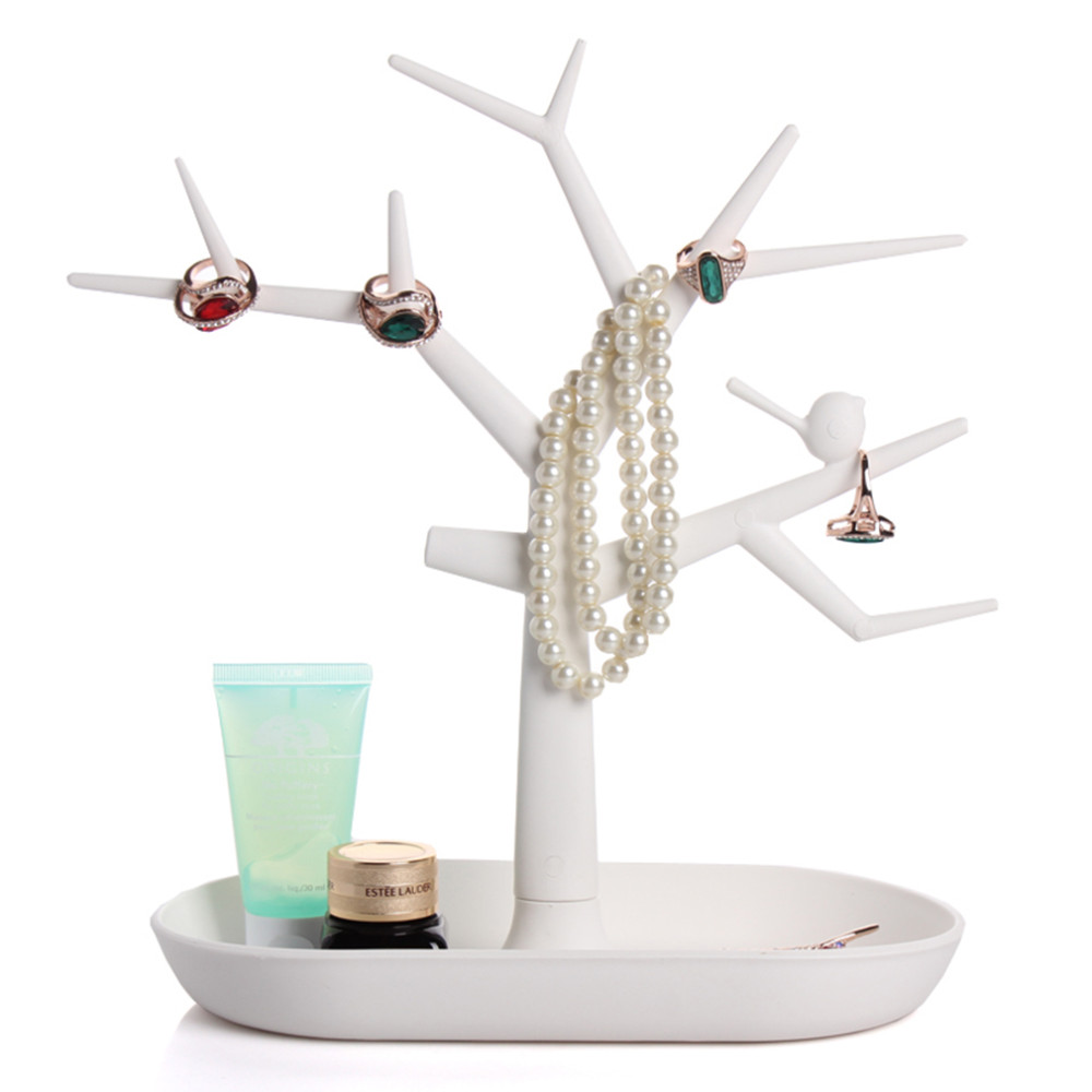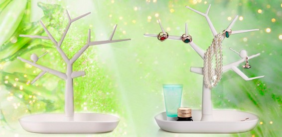 Пусть украшения растут на дереве! Просто поместите на его ветки кулоны, серьги, браслеты и находите их за три секунды. А тяжелые часы или массивные украшения можно сложить в поддон у основания органайзера.