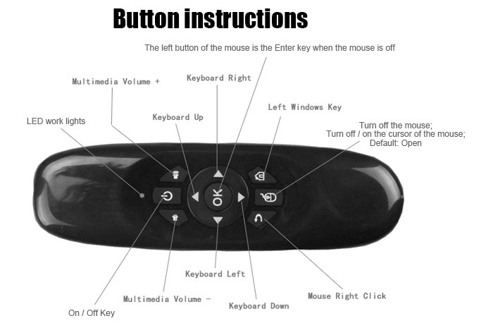 Отличный комбо-пульт 2.4 ГГц Air Mouse C120 + беспроводная мини клавиатура стандарта QWERTY в одном. Легкая, удобная и продвинутая новинка! По сути, Air Mouse - это воздушная мышь, не требующая соприкосновения с поверхностью стола и управляемая движениями ею в воздухе. На обратной стороне мыши присутствует мини клавиатура, с помощью которой можно писать в чате, отвечать на сообщения в соцсетях, вносить правки в текстовые документы. Полезное устройство для дома и работы преподавателей, менеджеров по продажам, презентаторов и т.д. С помощью данного устройства можно проводить презентации пределах радиуса действия - 10 метров. При работе с компьютером устройство работает по беспроводной сети Bluetooth. С помощью этой беспроводной миниклавиатуры с сенсорной панелью можно переключать слайды, менять опции экрана, рисовать на экране, подчеркивать слова и указывать на предметы. Идеально подходит для ПК, планшетов, Android TV Box, Smart TV, Google TV Box и т.д.