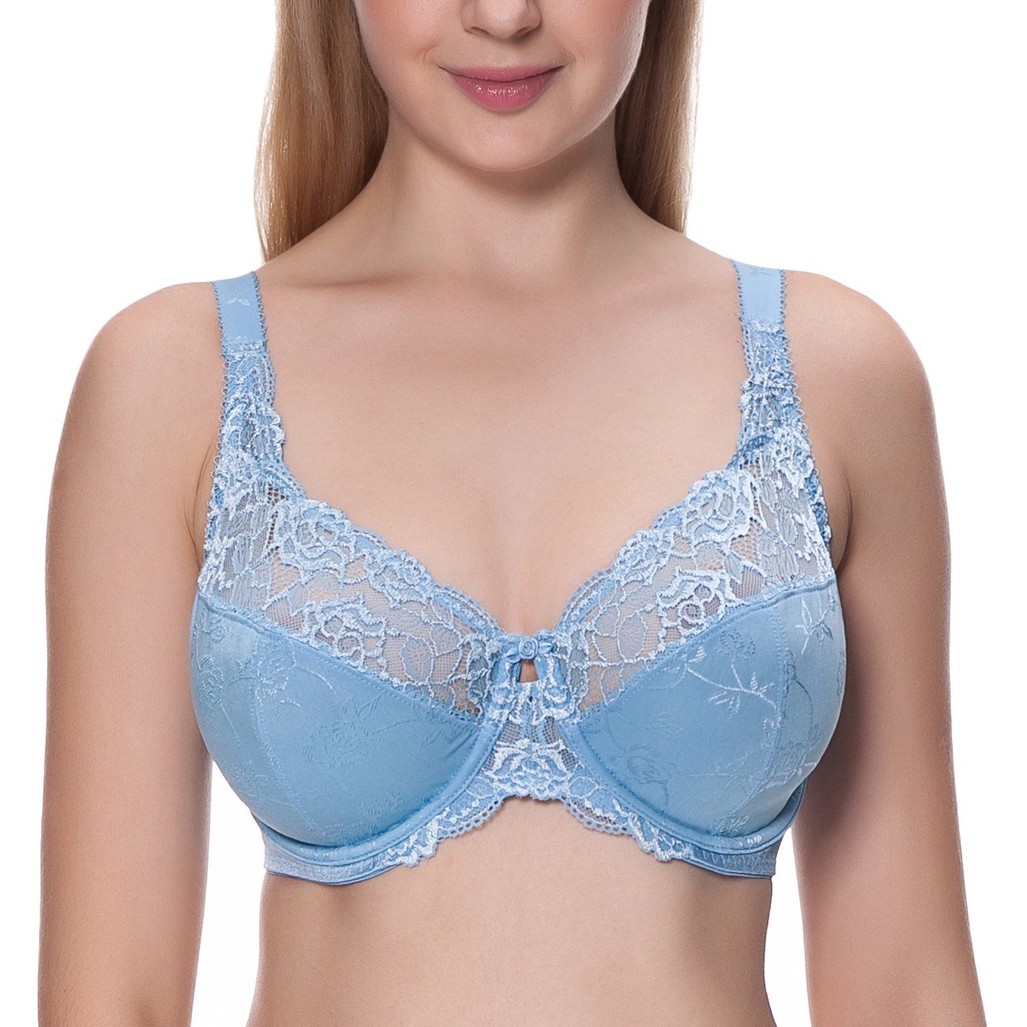 Данная конструкция уменьшает нагрузку на плечевой пояс. Комбинированная чашка из трикотажного полотна и вышивки на неэластичной сетке. Данная модель обеспечивает хорошую поддержку груди.