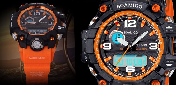 Водонепроницаемые спортивные аналоговые часы с двойным дисплеем.