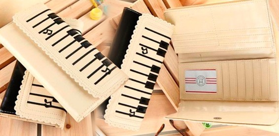 Редко встречаемый кошелёк в виде фортепиано плотно вошёл в моду.