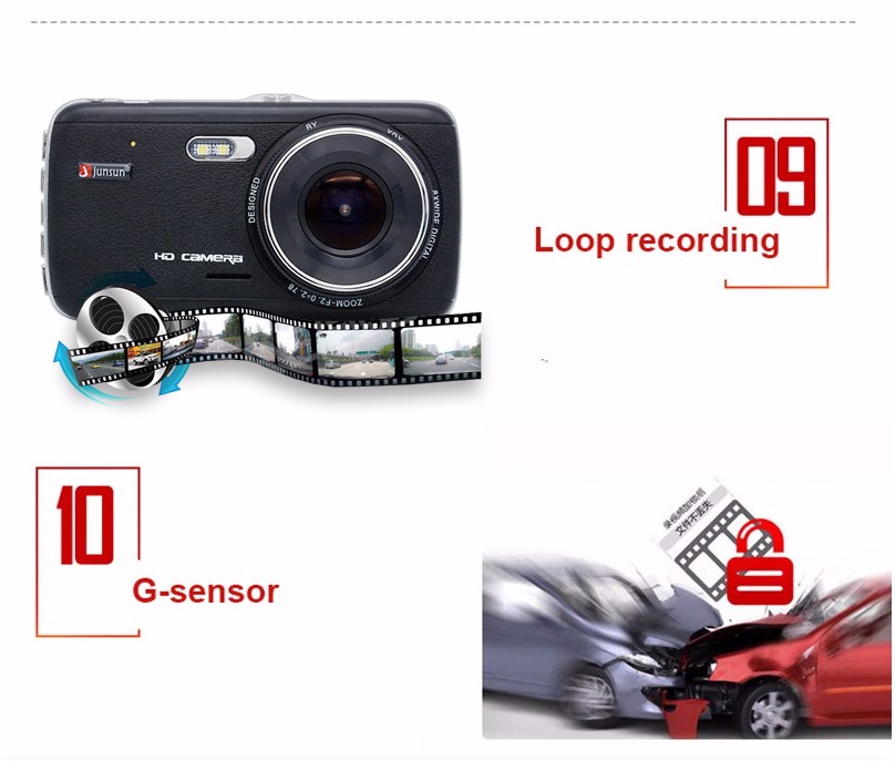 двойная записи, g-сенсор, обнаружение движения, бесшовные цикл видео