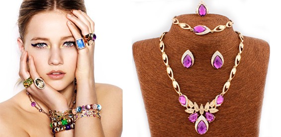 Кольцо и серьги классической овальной формы восхищают глубоким цветом кристаллов, а браслет и колье в том же стиле дополнят восхитительный образ женщены.