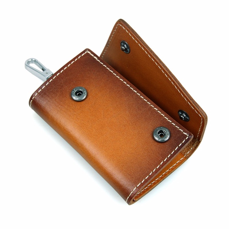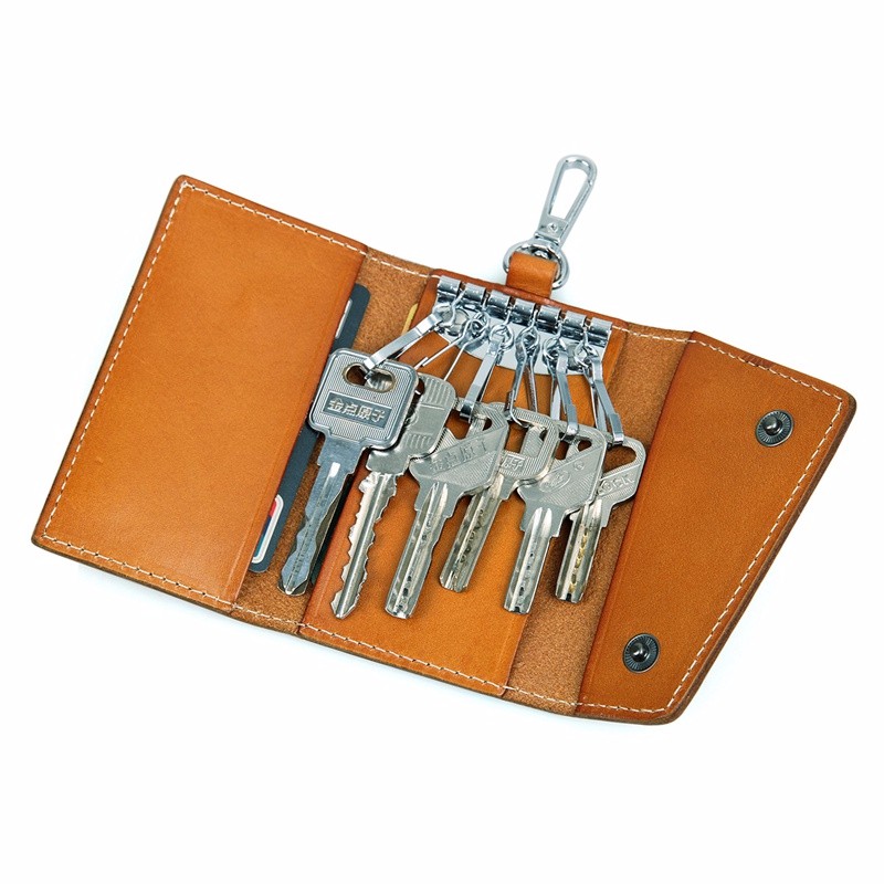 Ключница выполнена из натуральной гладкой кожи. Изделие закрывается с помощью кнопок. Внутри расположена металлическая панель с шестью фиксаторами для ключей. Ключница оснащена замком-карабином, с помощью которого изделие можно фиксировать на одежду.