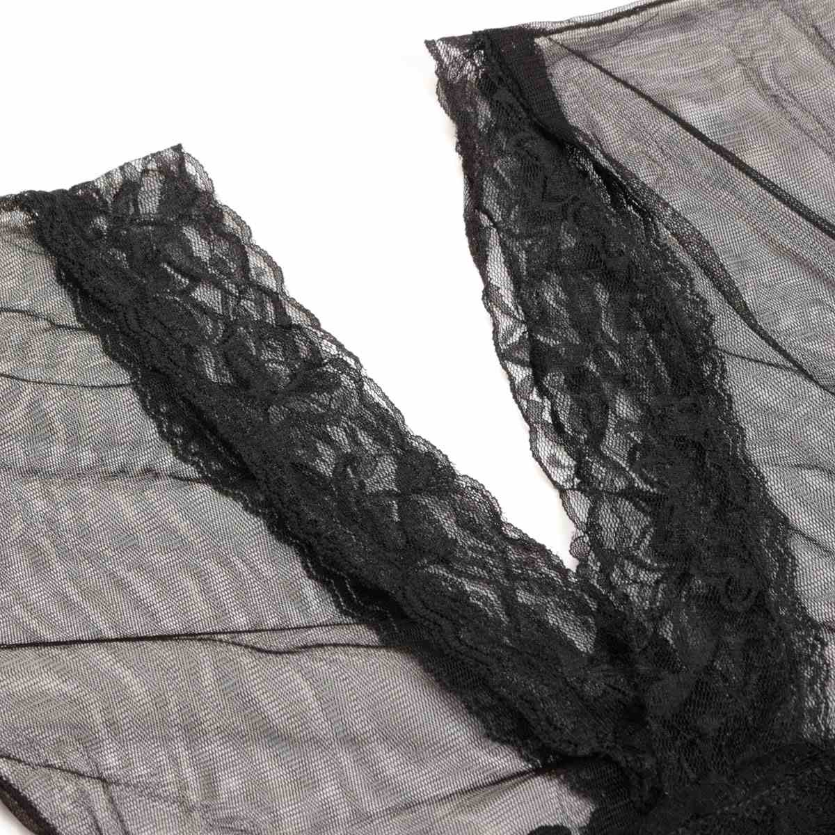 Выполнен из мягкого кружева и полиэстера.