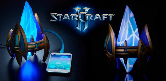 Станция Starcraft Protoss Pylon представляет из себя одновременно и ночник, и USB-зарядку для мобильных устройств в виде пилона расы протоссов. Она около 13 см в диаметре и высотой почти 18 см. Станция подключается к розетке. Круто смотрится в темноте :)