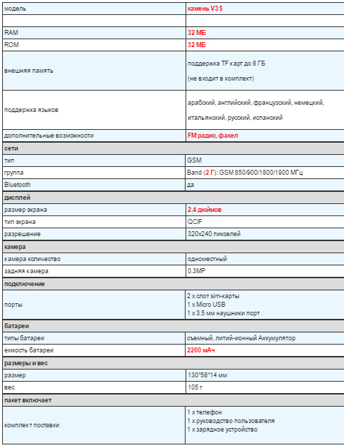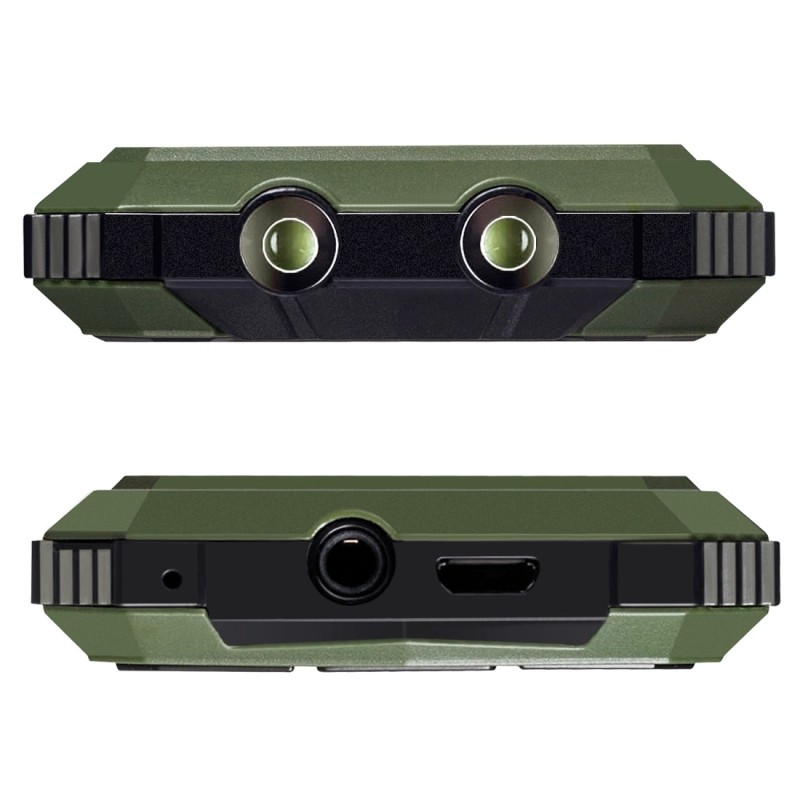 Экран диагональю 2,4 дюйма разрешением 240 x 320 пикселей защищен надежным стеклом, а на кнопки нанесено прозрачное прорезиненное покрытие. Устройство получило поддержку карт памяти, два слота для SIM-карт, модуль Bluetooth, фонарик, камеру разрешением 1,2 Мп, а также аккумулятор емкостью более 5000 мА•ч, которого должно хватить на несколько дней работы.