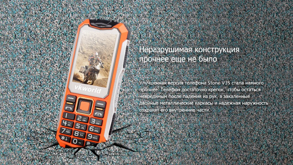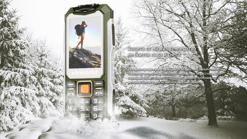 Производитель называет VKworld Stone V3S одним из самых защищенных телефонов. Свои слова VKworld подтверждает несколькими фактами. Во-первых, устройство имеет степень защиты корпуса IP67. Во-вторых, телефон продолжит работать в экстремальных условиях, даже когда температура опустится до -50°C. Сломать или погнуть его, даже сбросив с большой высоты, крайне сложно, этому способствует корпус, выполненный из цинкового сплава.