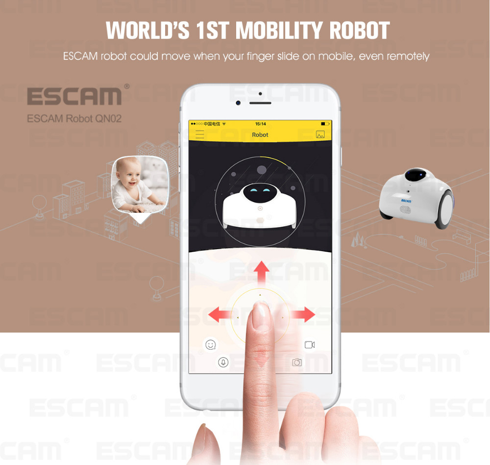 Escam интеллектуальная видеокамера робот, которая может перемещаться и автоматически заряжаться. Это - лучший партнер для домашнего охранника, а также для развлечений с Вашим ребенком или старшими.