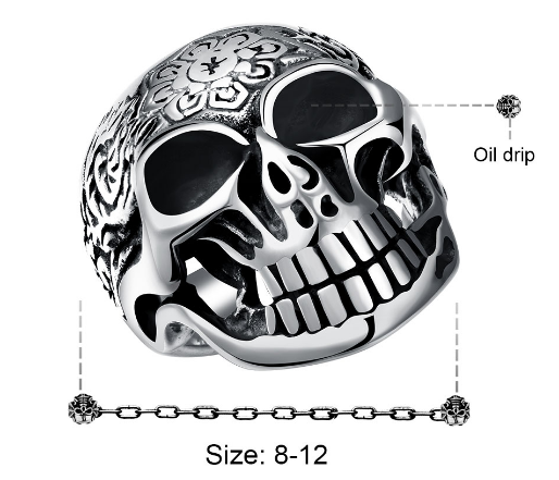 Винтажный перстень с черепом из нержавеющей стали с платиновым покрытием. (Размер 8-12)