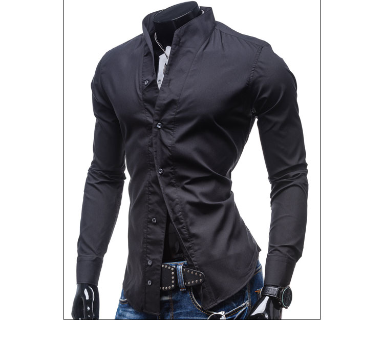 Рубашка для мужчины с воротником стойкой на работу, в офис и просто на каждый день. Модель с длинными рукавами. Застегивается на пуговицы.