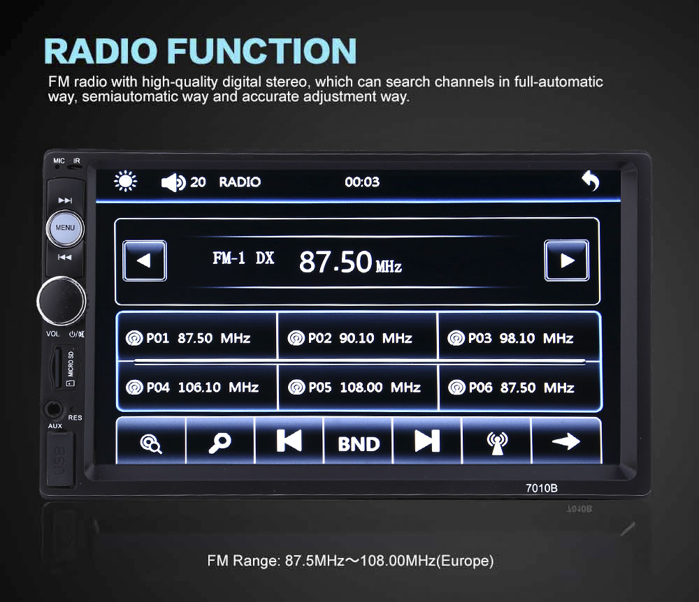 функция радио, поддержка для полуавтоматического поиска/ручной поиск/частота тонкой настройки.