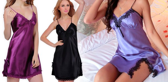 Женские короткие сорочки полуприлегающего силуэта из атласной ткани красивых оттенков. Лиф и низ сорочки декорированы кружевом.
