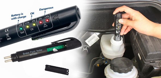 Прибор может быть использован в качестве цифрового тестера тормозной жидкости, выполнен в виде ручки, им удобно работать в ограниченном доступе. Подходит для тестирования жидкости DOT3, DOT4. Диагностика показывает процентное содержание воды в тормозной жидкости.