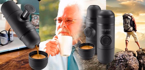 Аппарат называется Wacaco Minipresso, эта миниатюрная кофемашинка весит всего 363 грамма и помещается в карман. Гаджет, который способен порадовать чашечкой эспрессо в любых условиях. Для экспрессо необходимо 18 движений, для двойного экспрессо 28 и легче всего за 13 раз можно добиться вкусного ристретто.