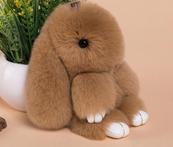 Брелок кролик из меха. Аксессуар используется обычно для дополнения к брендовой сумке или рюкзаку. Набирает огромную популярность в последнее время. На ощупь безумно приятная вещь.