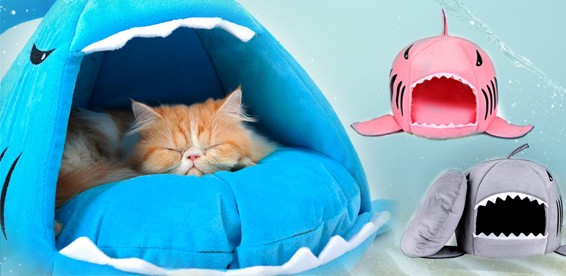 Необычная дизайнерская лежанка в виде акулы. Теплый, очень уютный, мягкий и необычный домик-лежанка практически полностью закрытый, что нравится многим животным и удобно для маленьких котят и щенят: им будет тепло, комфортно и безопасно.