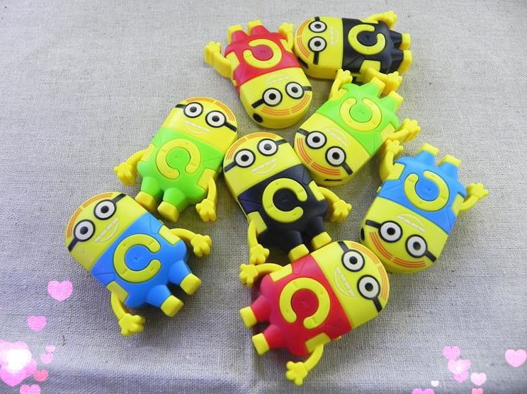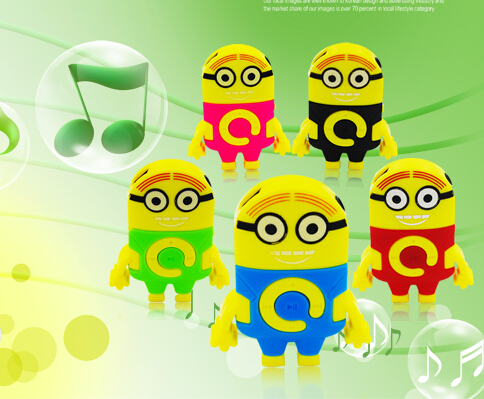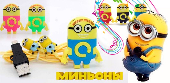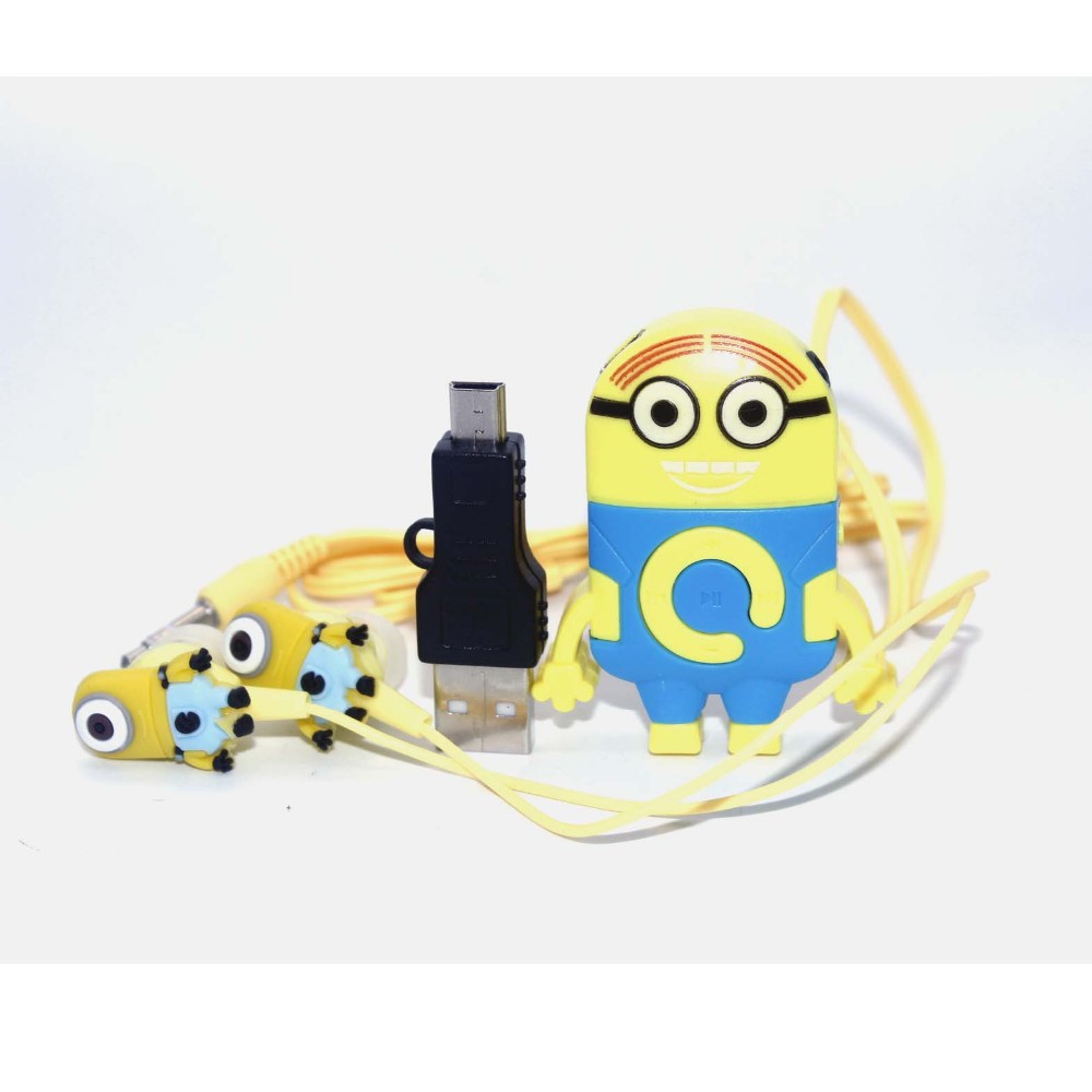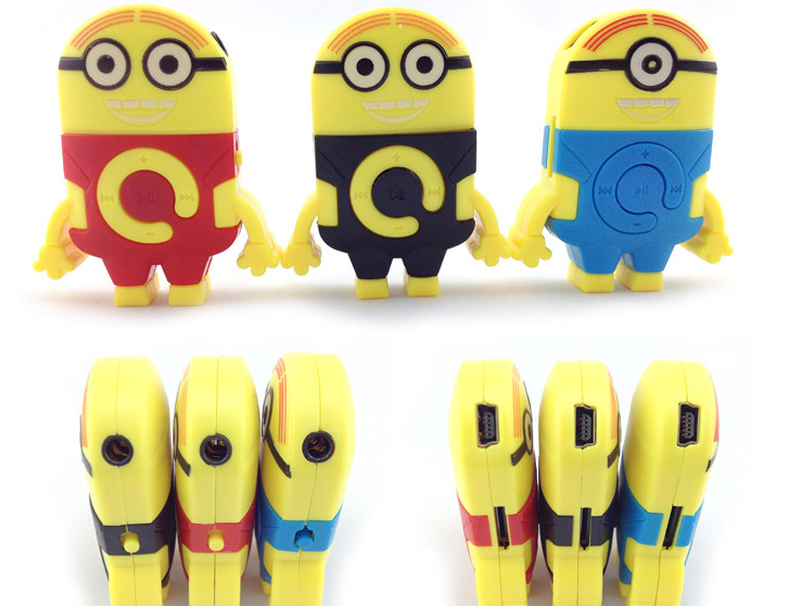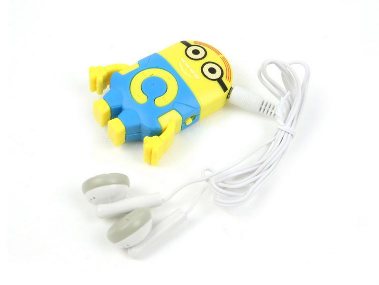 Весёлые MP3 плееры Миньоны из знаменитого мультика. Работает на MicroSD/TF флешках (картах памяти). Заряжается от mini USB. Одной зарядки хватает до 5 часов прослушивания музыки. Множество ярких и прикольных расцветок. Плеер настолько мал, что его можно повесить на брелок для ключей. На mp3 плеере Миньон есть такие кнопки как плей/пауза, регулятор громкости и переключение треков (песен). Стандартный вход для наушников 3.5мм