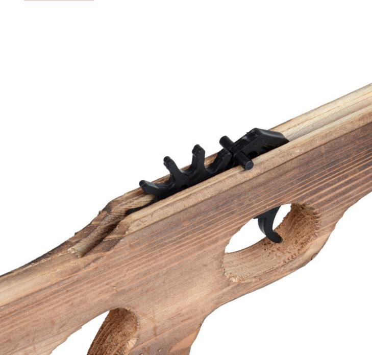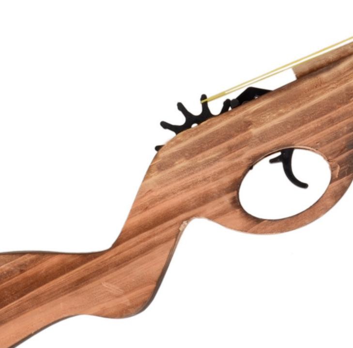 Ружье изготовлено из 100% натуральной древесины. Оно может похвастаться очень малым весом и максимально удобной для захвата рукой конструкцией. Ружье способно производить как одиночные выстрелы, так и одновременный выстрел сразу несколькими резинками. Зацепите резинки за специальное колесо и идите в атаку! Чем быстрее вы будете нажимать на спусковой курок, тем быстрее и дальше резинки будут вылетать из вашего ружья. Порадуйте внутреннего ребенка сотрудника в офисе или свое чадо этим грозным, но вполне безобидным оружием. Вы можете легко и быстро купить резинкострел из дерева в нашем интернет магазине.