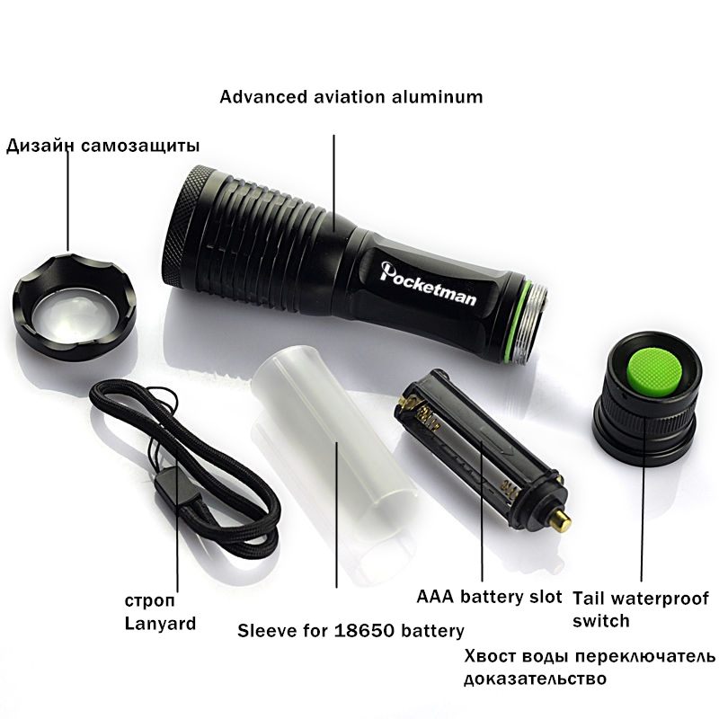 Источник питания: один 18650 литий-ионный аккумулятор или 3x AAA батареи