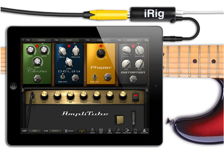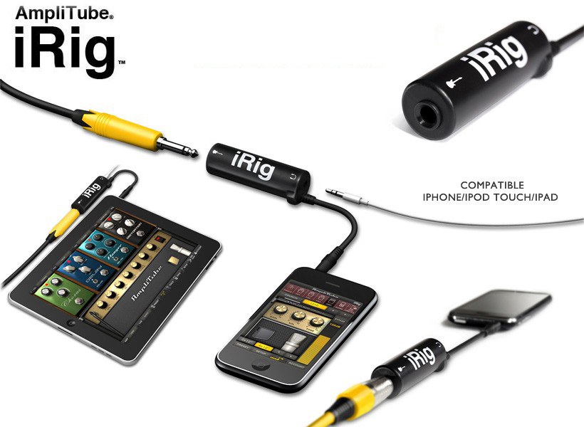 Гитарный адаптер iRig для iOS и Android устройств, превращает ваш планшет, мобильный телефон, смартфон в настоящую мобильную звуковую студию для вашей гитары или баса, звук можно вывести в Наушники, Комбик (голову) или любые мониторы (например колонки домашние). Включает в себя полный комплект для записи гитары и бас гитары, такие инструменты как тюнер, педали эффектов, микрофоны, различные усилители и кабинеты, игра в реальном времени на электрогитаре и басу (без задержек) multiFX, запись звука и многое другое.