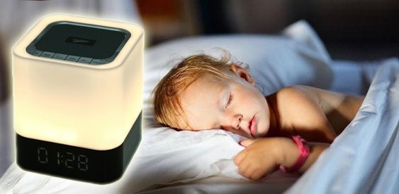 Колонка Musky оснащена яркой подсветкой, легким прикосновением на колонку сверху включается свет и с последующими прикосновениями яркость света уменьшается или повышается. Встроенные электронные часы с функцией будильника.
