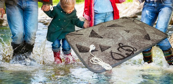 Сушилка для обуви: постелите на пол коврик в любом удобном для вас месте, включите в розетку. Вы получите мягкий инфракрасный обогрев.
