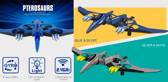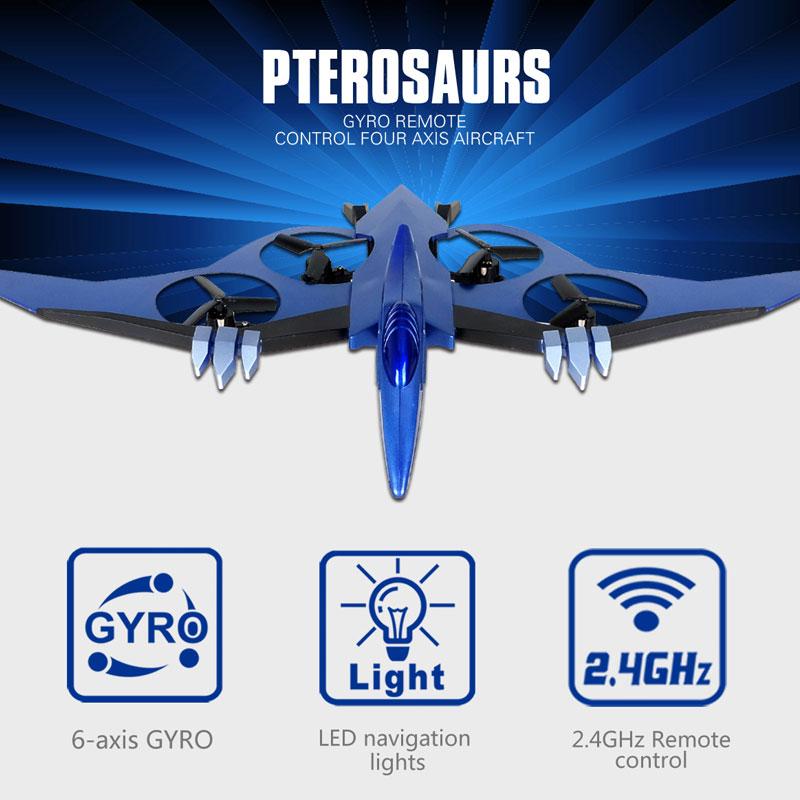 Игрушечные радиоуправляемые птерозавры, оснащённые 6-осевым гироскопом, отличаются высокой стабильностью полёта. Они просты в эксплуатации и не требуют специальных навыков для управления. Гироскоп корректирует скорость оборотов винтов, препятствуя самопроизвольному вращению вертолёта, что позволяет управлять им даже ребёнку, никогда не державшему в руках пульт управления игрушечным радиоуправляемым вертолётом.